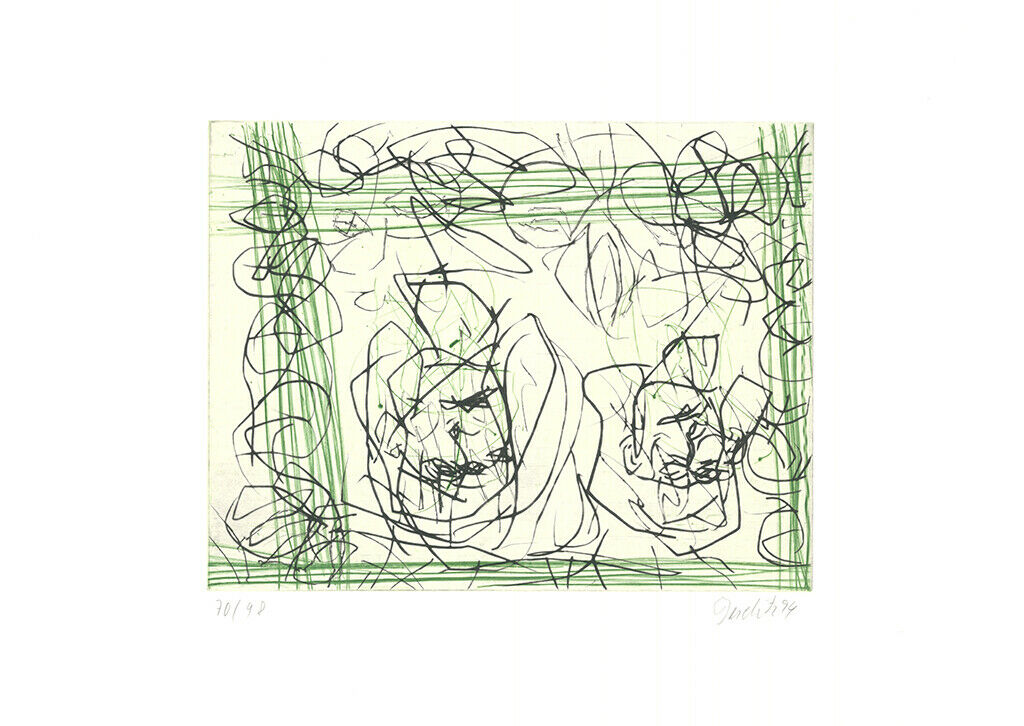 Georg Baselitz (1938) Komposition, FR grün/schwarz 1994, sign. Ex. 45/98, 35,0/44,5 / 55.5x 78.0 cm Velin |