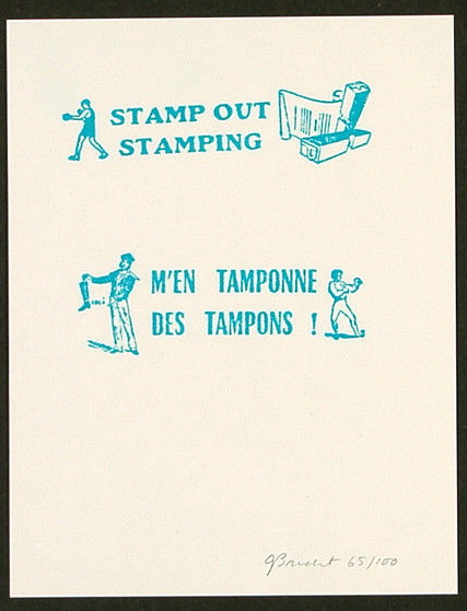 George Brecht (1926 - 2008) Fluxus Stamp out Stamping, Stempelgrafik ex: Hommage à Addi Köpcke, sign. Ex. 65/100, 42 x 30 cm, Blatt auf schwarzem Halbkarton aufgelegt